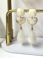 BOUCLE D'OEILLE COEUR ET GOUTTE BLANCHE
