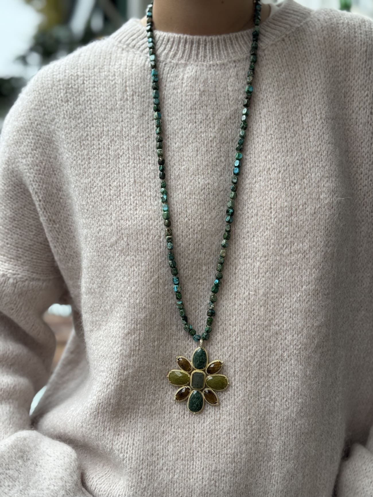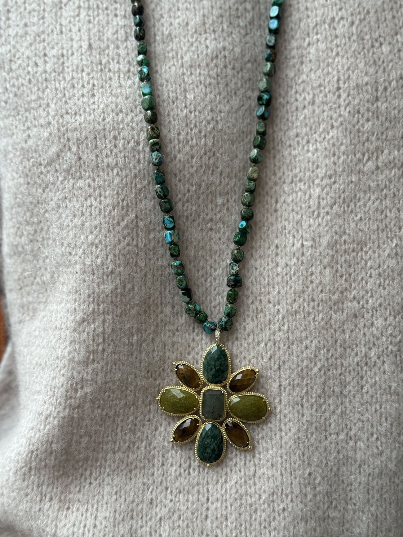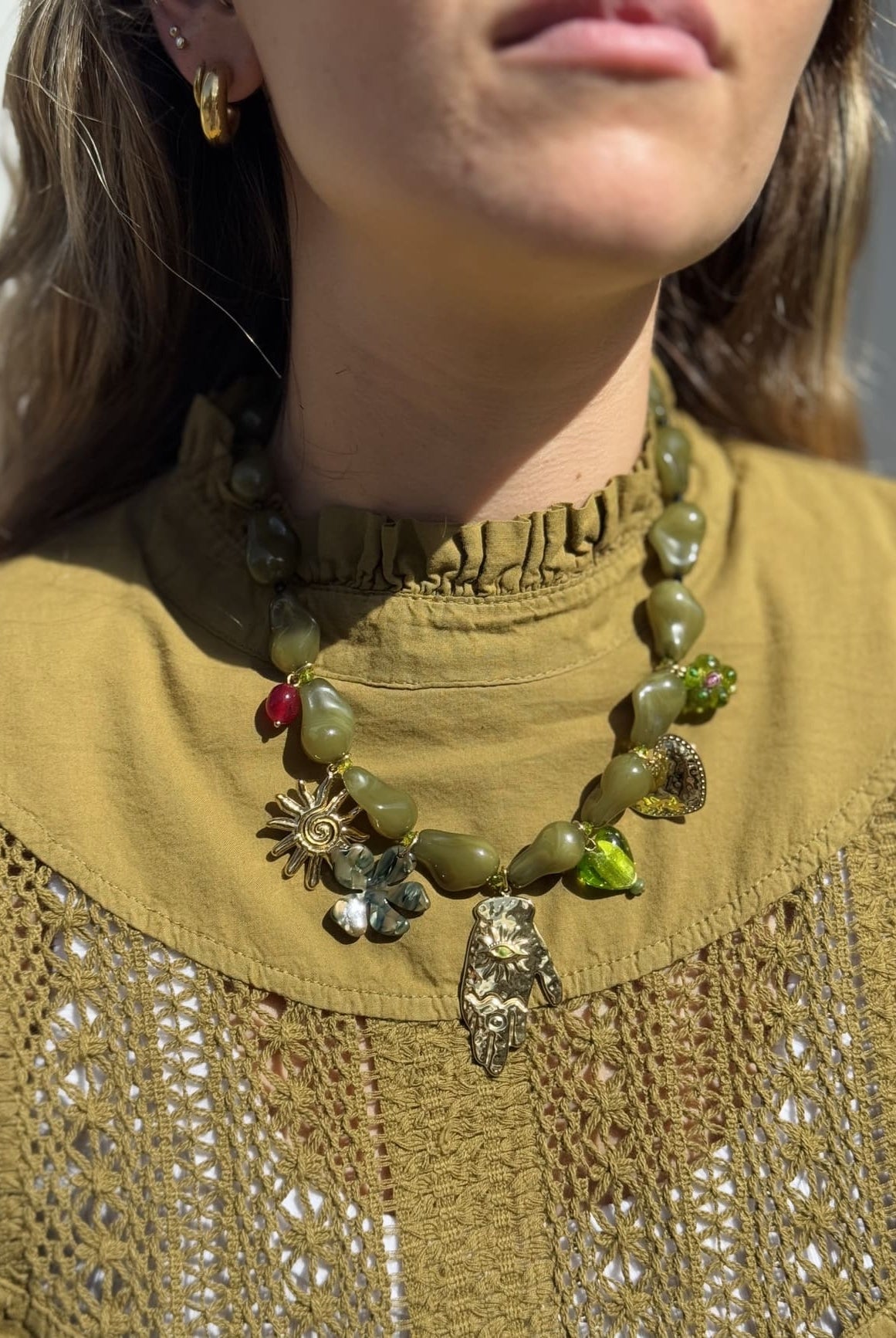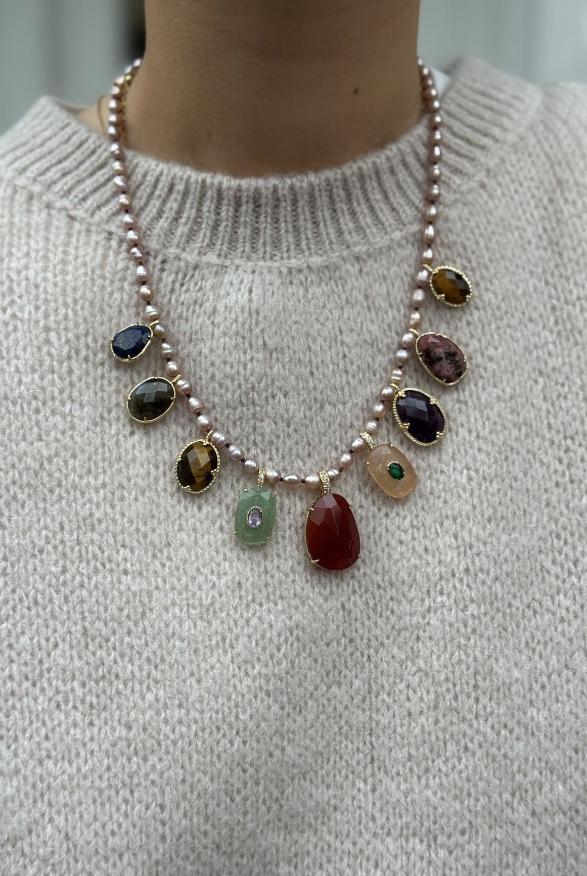 Collier à breloques, Collier au look vintage, Collier en perles semi-précieuses