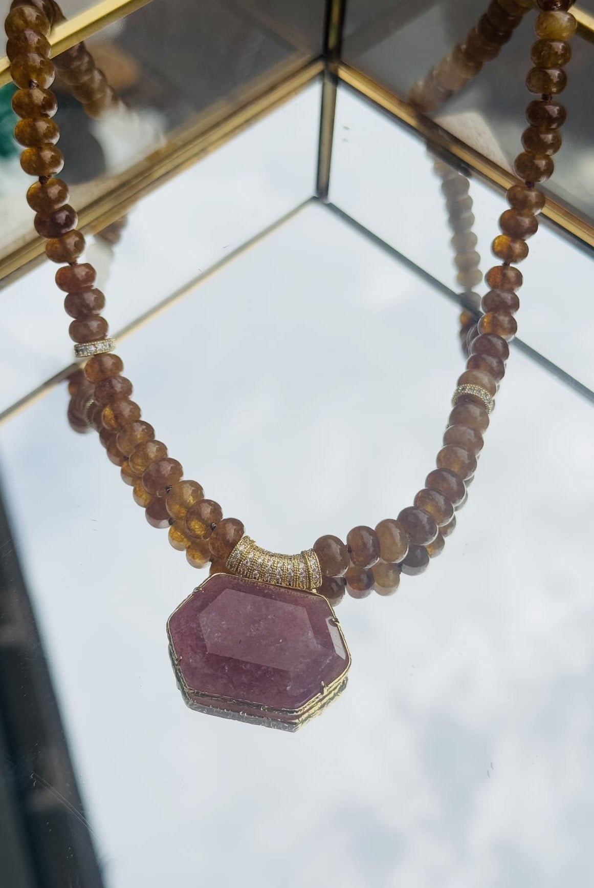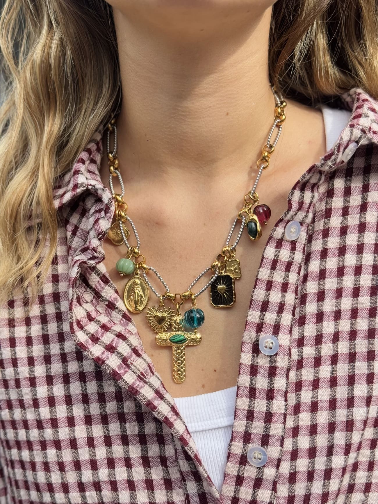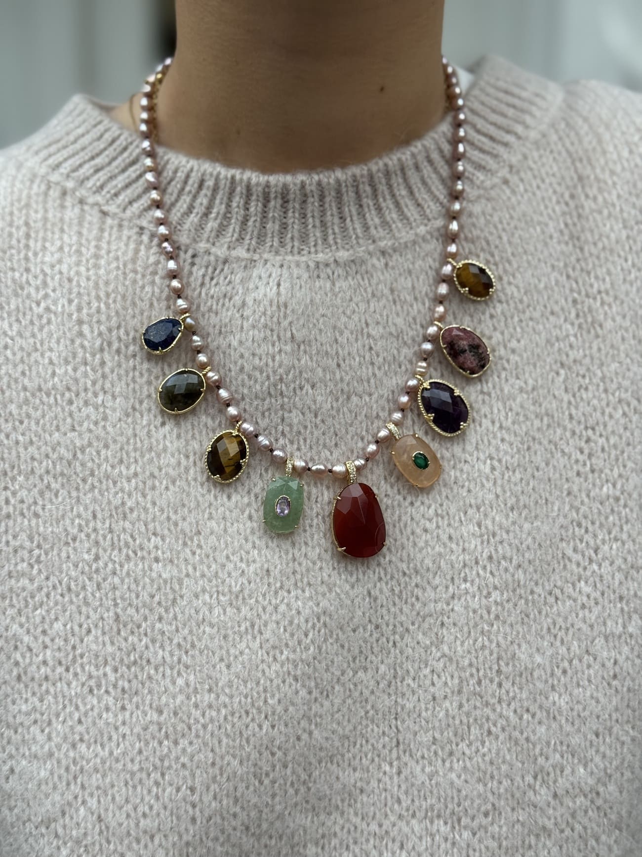 Collier à breloques, Collier au look vintage, Collier en perles semi-précieuses