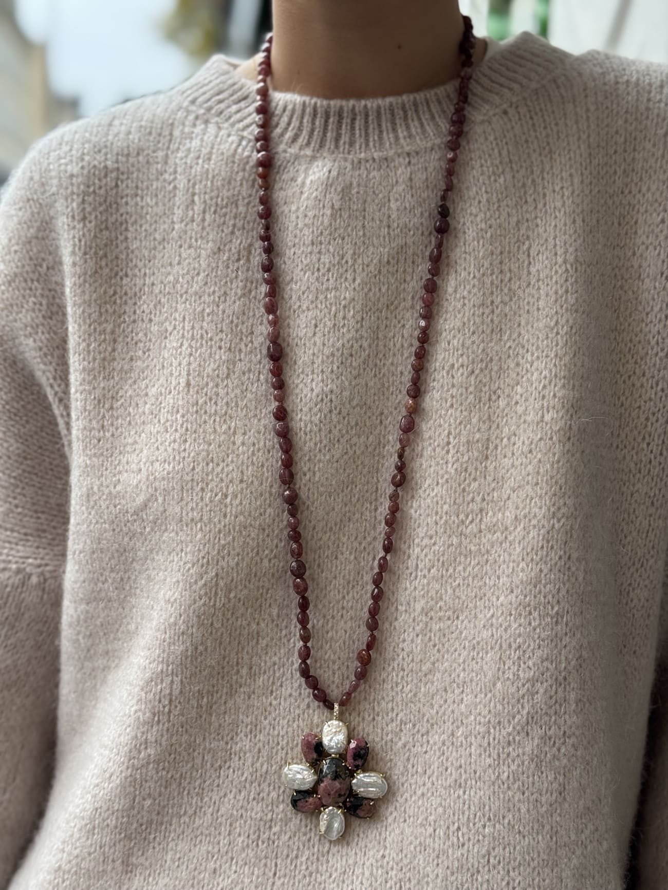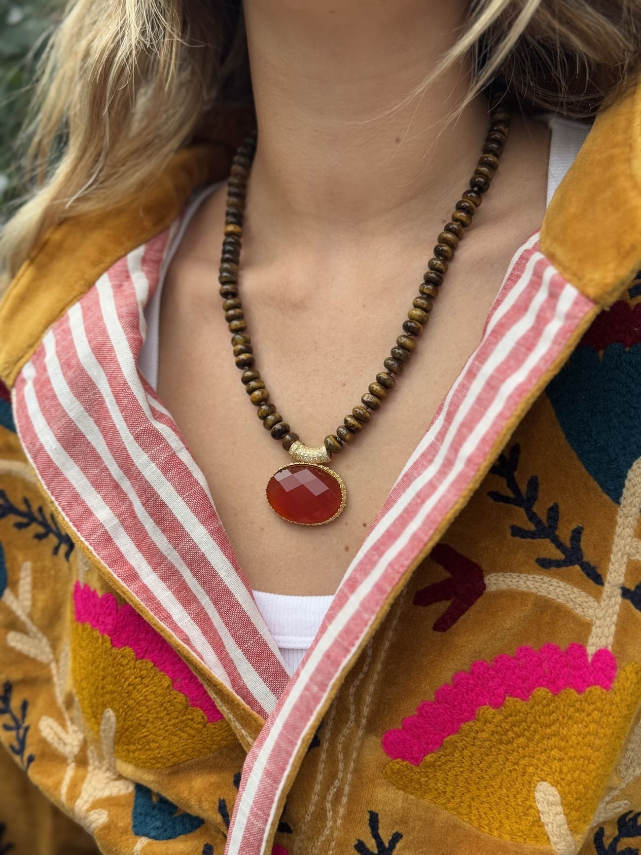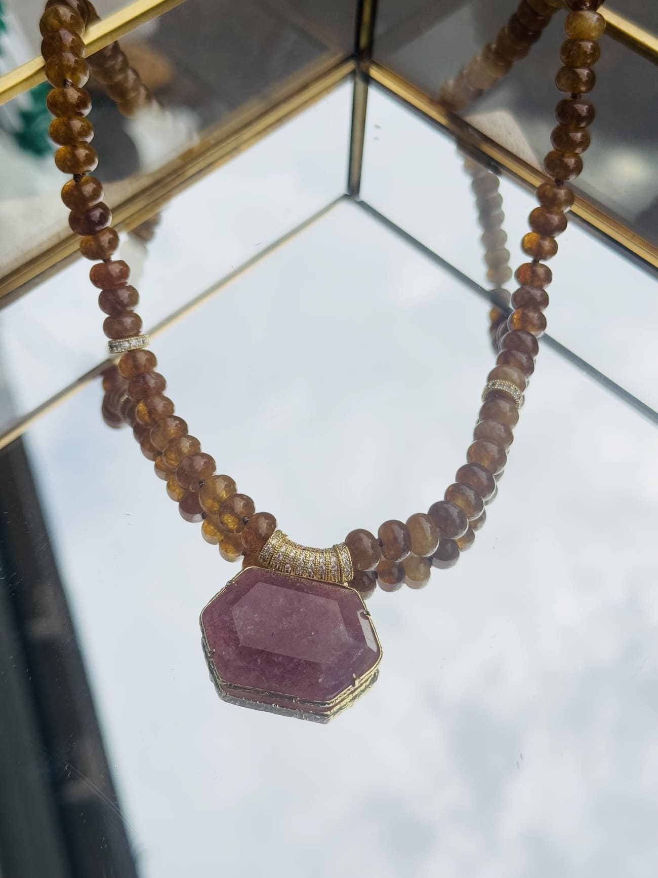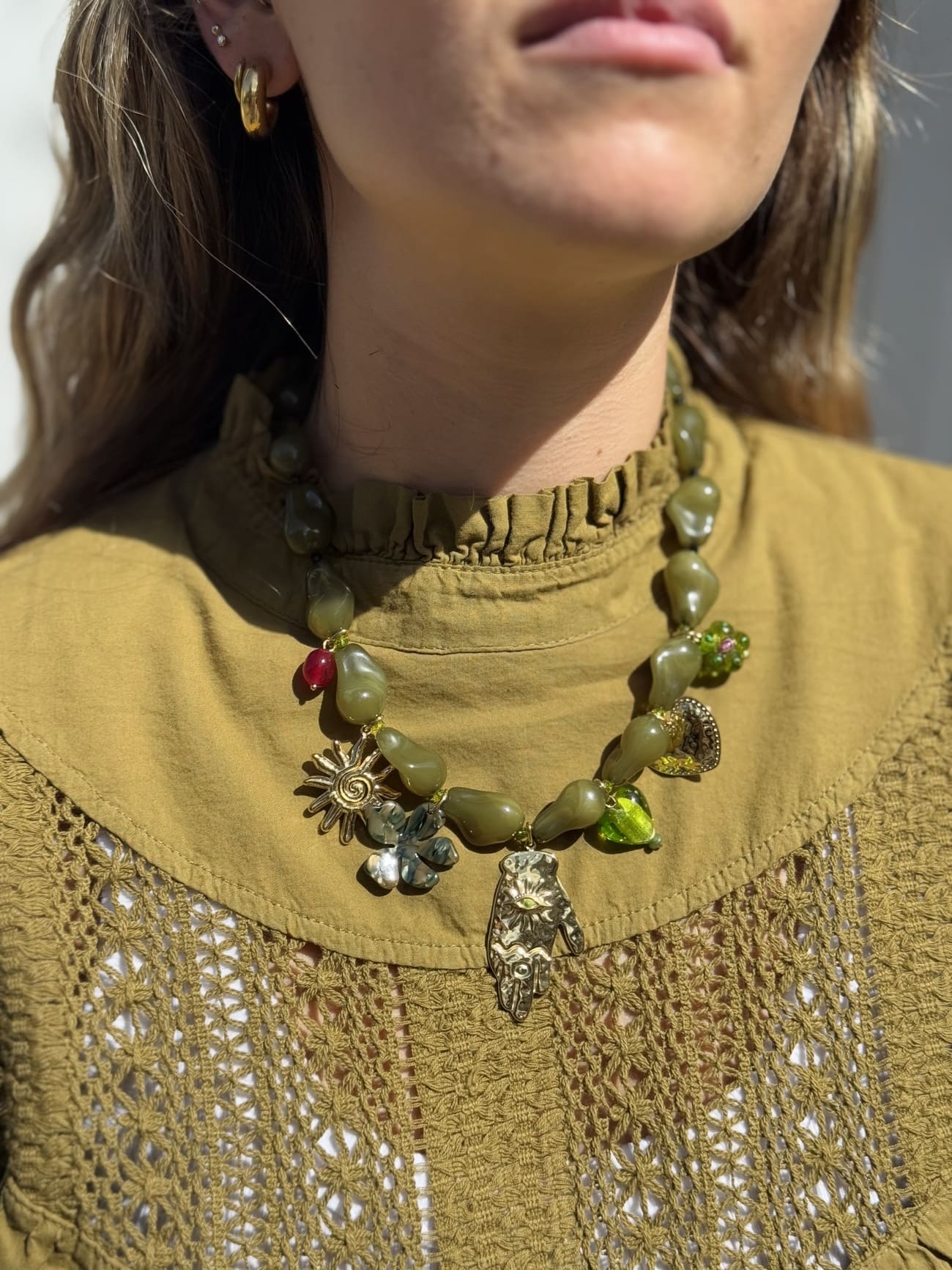 Collier à breloques, Collier au look vintage, Collier en perles semi-précieuses