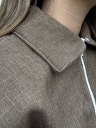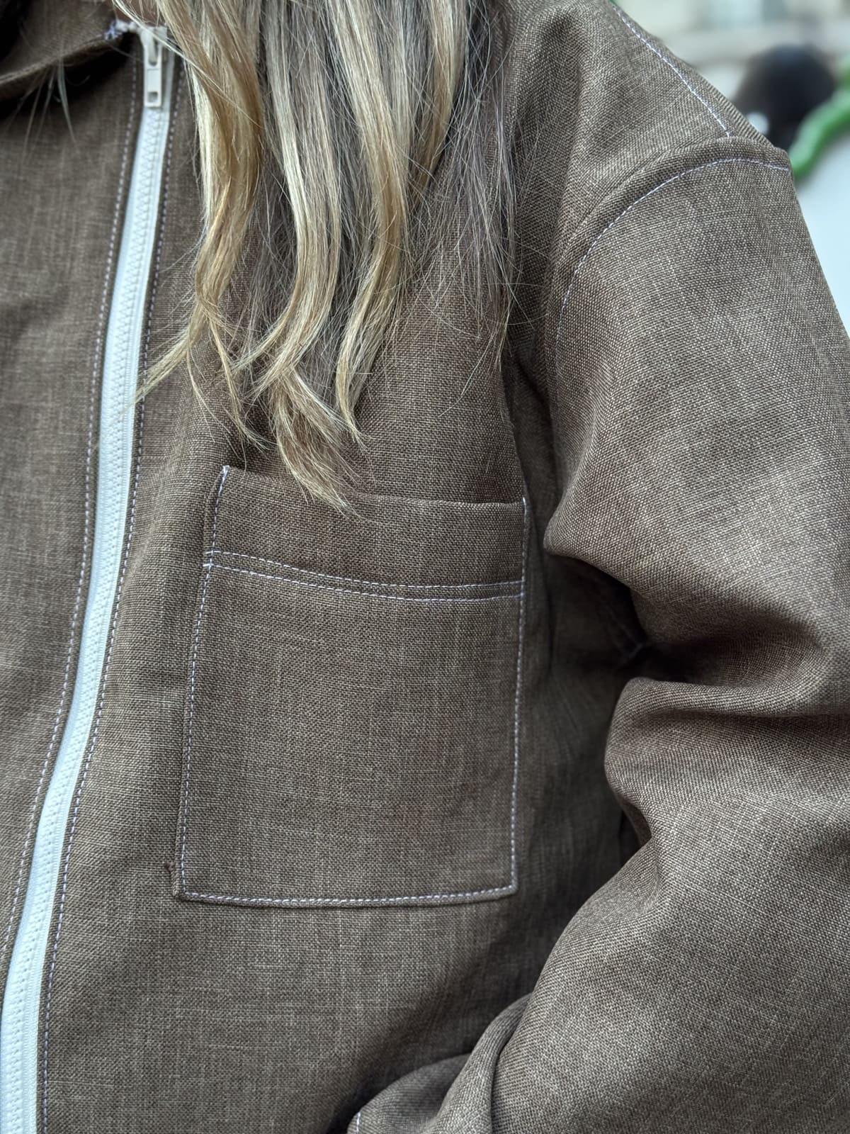 Cette veste en tissu upcyclé est réalisée à partir d’un rideau, transformé avec soin pour devenir une pièce à la fois originale et durable. Sa teinte marron chaleureuse et son col avec zip lui donnent un look moderne et pratique. Confectionnée made in France en 100 % coton, elle allie confort, authenticité et engagement écoresponsable.