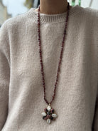 SAUTOIR PIERRE NATURELLE - FLEUR - RUBIS