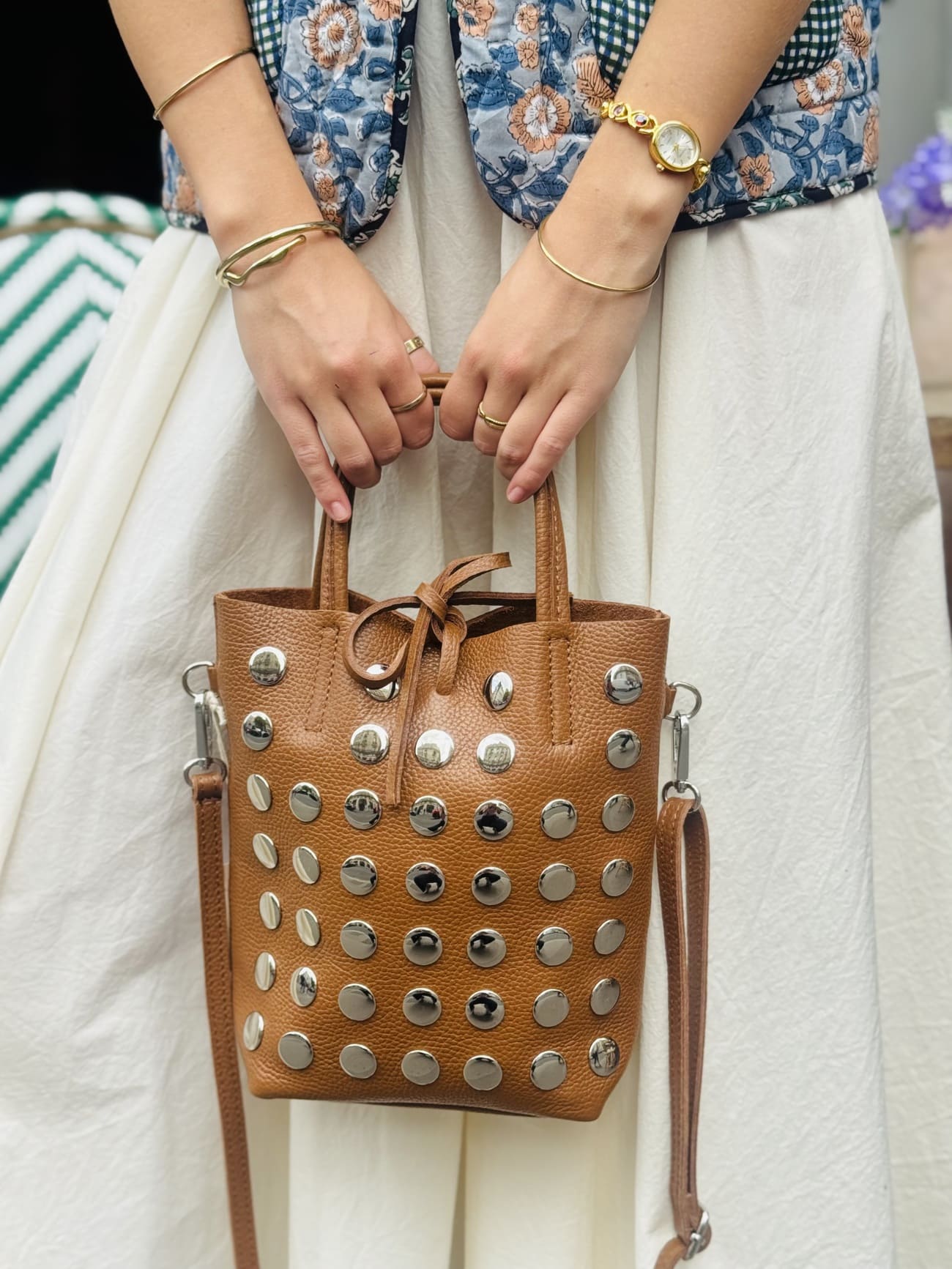 SAC EN CUIR CLOUTE - CARAMEL - LEONE