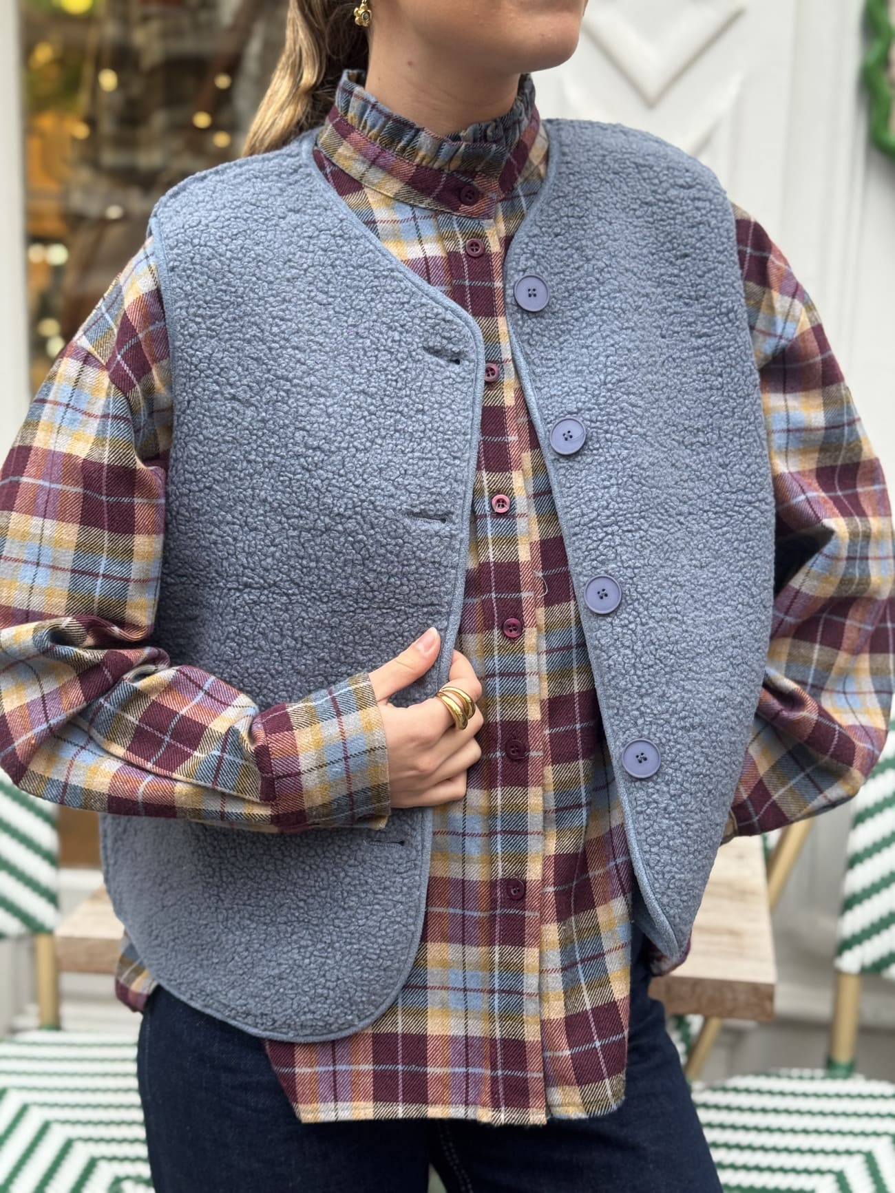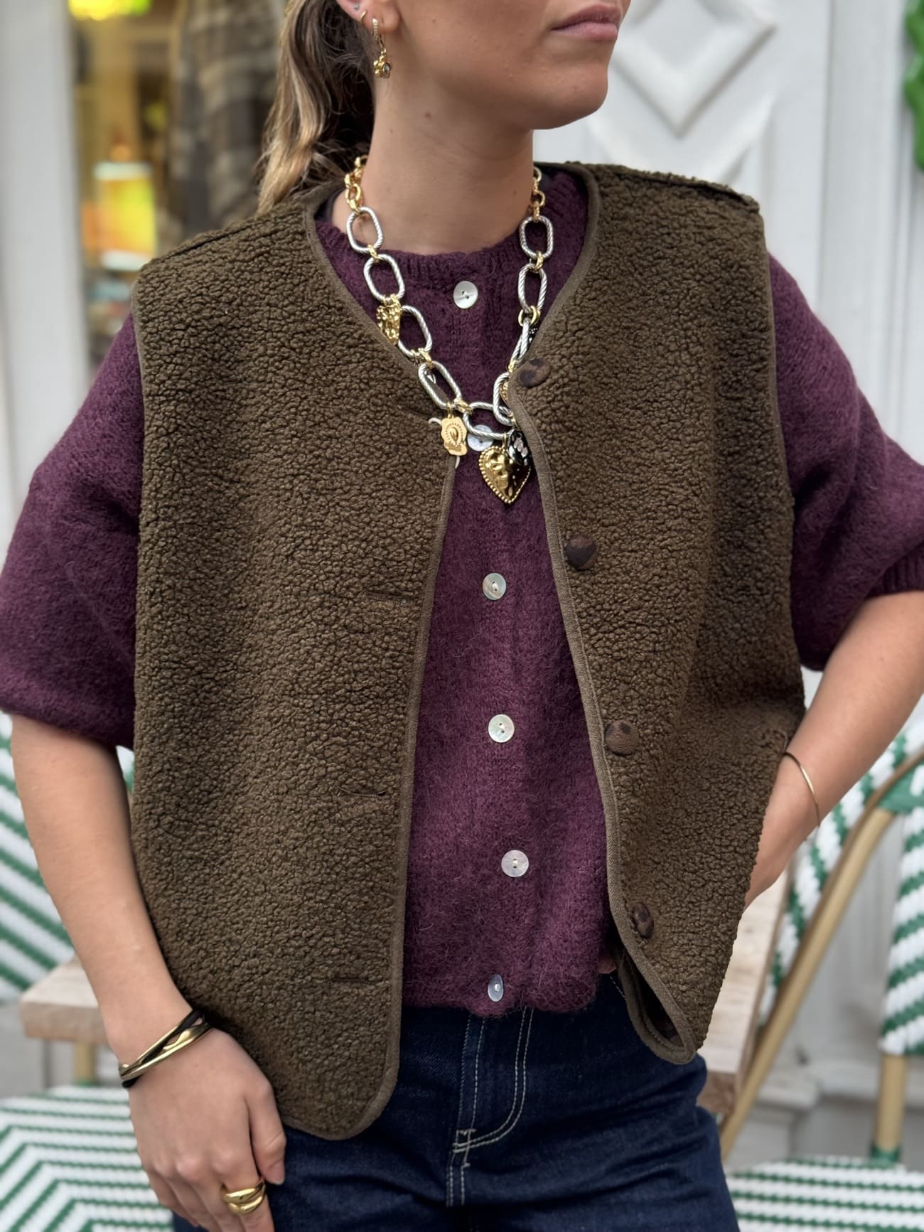 En lin, en coton ou en laine légère, elle se superpose sur une robe fluide, un jean clair ou une blouse romantique.
