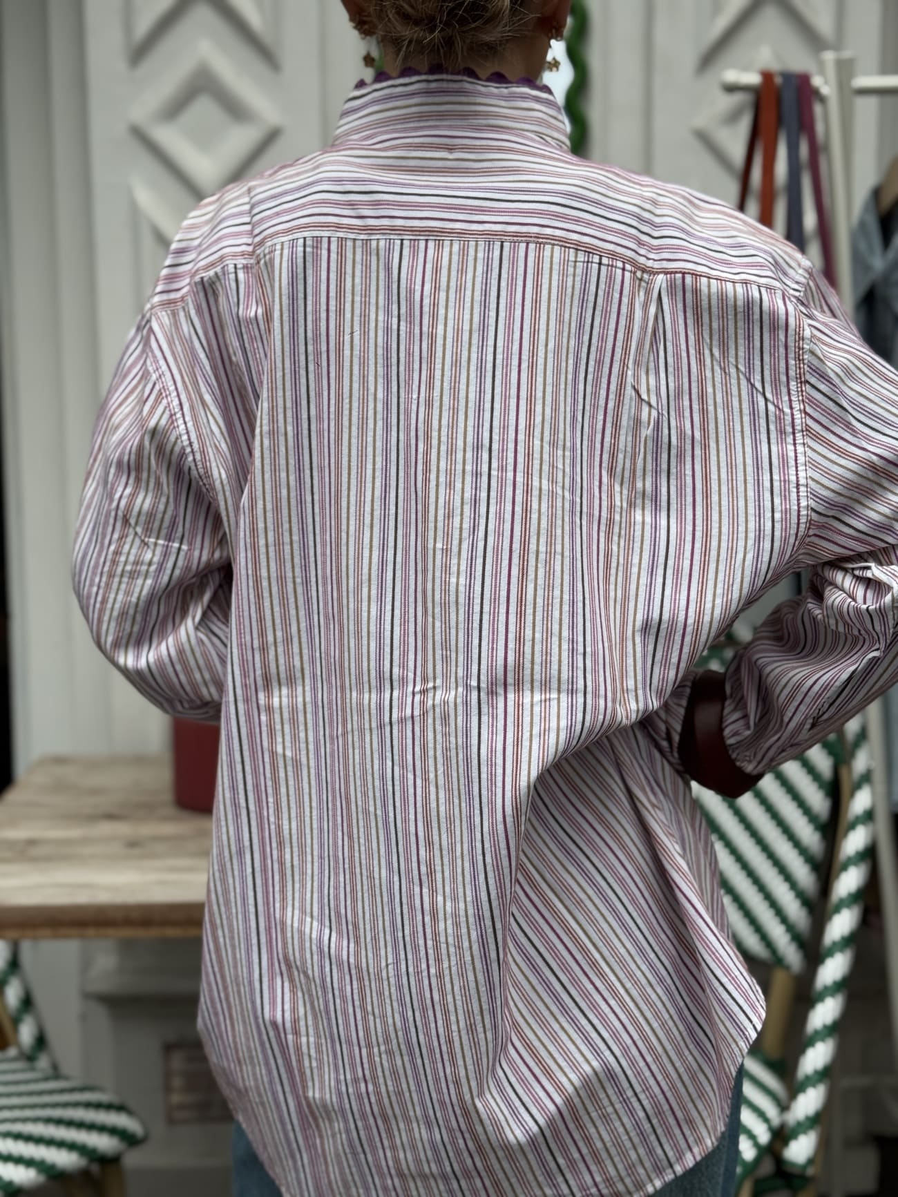 Le détail subtil du croquet sur le col et les manches qui renforcent l’esprit création artisanale
