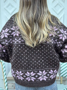 Pull femme marron à motifs jacquard rose : chaleur & style raffiné